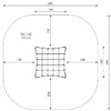 Standpfosten 80 mm x 80 mm aus feuerverzinktem und pulverbeschichtetem Stahl, Stahlseile aus Polypropylengeflecht mit witterungsbeständigen Kunststoffelementen, Kalibrierte Ketten und alle Verbindungen aus Edelstahl, Abmessungen: L 160 cm x B 160 cm x H 55 cm, Sicherheitsbereich: L 460 cm x B 460 m, Freie Fallhöhe: < 60 cm